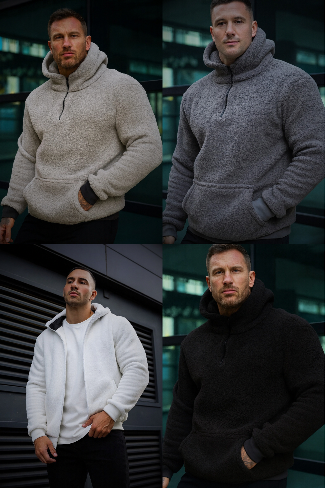 Men’s Light Gray Sherpa Cozy Fleece Hoodie